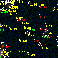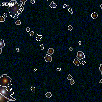 Object #897 x,y = (1082, 2327) RA, Dec = (19:17:09.288, -33:31:06.24) = (289.28870, -33.51840) BPZ = 5.499 [5.334--5.785] type = 9.00 (SB2_B10) chisq2 = 0.12 ODDS = 0.96 z_cluster = 0.540