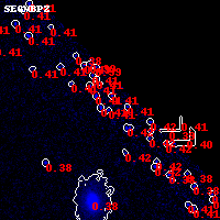 Object #363   x,y = (3205, 3776)   RA, Dec = (03:12:35.784, 08:27:36.00) = (48.14910, 8.46000)   BPZ = 0.406 [0.051--0.865]   type = 6.00 (Sbc_B10)   stellarity = 0.99   chisq2 = 990.00   ODDS = 0.21   z_cluster = 0.270