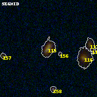 Black segments are analyzed here. Roll mouse over color images to view segments. Best viewed in a wide browser window (1200 pixels or more). Download SED & P(z) plots to view larger versions.