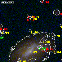 Black segments are analyzed here. Roll mouse over color images to view segments. Best viewed in a wide browser window (1200 pixels or more). Download SED & P(z) plots to view larger versions.
