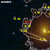 Black segments are analyzed here. Roll mouse over color images to view segments. Best viewed in a wide browser window (1200 pixels or more). Download SED & P(z) plots to view larger versions.