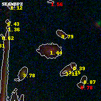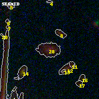 Black segments are analyzed here. Roll mouse over color images to view segments. Best viewed in a wide browser window (1200 pixels or more). Download SED & P(z) plots to view larger versions.