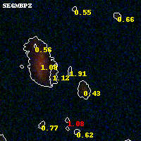 Black segments are analyzed here. Roll mouse over color images to view segments. Best viewed in a wide browser window (1200 pixels or more). Download SED & P(z) plots to view larger versions.