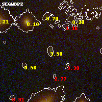 Black segments are analyzed here. Roll mouse over color images to view segments. Best viewed in a wide browser window (1200 pixels or more). Download SED & P(z) plots to view larger versions.