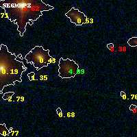 Black segments are analyzed here. Roll mouse over color images to view segments. Best viewed in a wide browser window (1200 pixels or more). Download SED & P(z) plots to view larger versions.