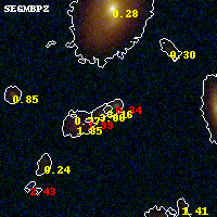 Black segments are analyzed here. Roll mouse over color images to view segments. Best viewed in a wide browser window (1200 pixels or more). Download SED & P(z) plots to view larger versions.