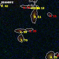 Black segments are analyzed here. Roll mouse over color images to view segments. Best viewed in a wide browser window (1200 pixels or more). Download SED & P(z) plots to view larger versions.