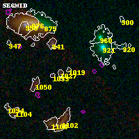 Black segments are analyzed here. Roll mouse over color images to view segments. Best viewed in a wide browser window (1200 pixels or more). Download SED & P(z) plots to view larger versions.