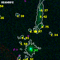 Black segments are analyzed here. Roll mouse over color images to view segments. Best viewed in a wide browser window (1200 pixels or more). Download SED & P(z) plots to view larger versions.