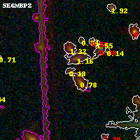 Black segments are analyzed here. Roll mouse over color images to view segments. Best viewed in a wide browser window (1200 pixels or more). Download SED & P(z) plots to view larger versions.