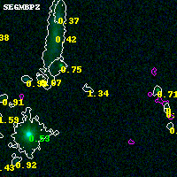 Black segments are analyzed here. Roll mouse over color images to view segments. Best viewed in a wide browser window (1200 pixels or more). Download SED & P(z) plots to view larger versions.