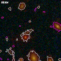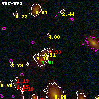 Black segments are analyzed here. Roll mouse over color images to view segments. Best viewed in a wide browser window (1200 pixels or more). Download SED & P(z) plots to view larger versions.