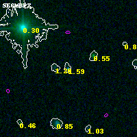 Black segments are analyzed here. Roll mouse over color images to view segments. Best viewed in a wide browser window (1200 pixels or more). Download SED & P(z) plots to view larger versions.