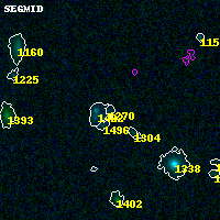 Black segments are analyzed here. Roll mouse over color images to view segments. Best viewed in a wide browser window (1200 pixels or more). Download SED & P(z) plots to view larger versions.