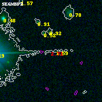 Black segments are analyzed here. Roll mouse over color images to view segments. Best viewed in a wide browser window (1200 pixels or more). Download SED & P(z) plots to view larger versions.