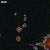 Black segments are analyzed here. Roll mouse over color images to view segments. Best viewed in a wide browser window (1200 pixels or more). Download SED & P(z) plots to view larger versions.