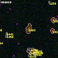 Black segments are analyzed here. Roll mouse over color images to view segments. Best viewed in a wide browser window (1200 pixels or more). Download SED & P(z) plots to view larger versions.