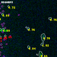 Black segments are analyzed here. Roll mouse over color images to view segments. Best viewed in a wide browser window (1200 pixels or more). Download SED & P(z) plots to view larger versions.