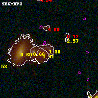 Black segments are analyzed here. Roll mouse over color images to view segments. Best viewed in a wide browser window (1200 pixels or more). Download SED & P(z) plots to view larger versions.