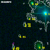 Black segments are analyzed here. Roll mouse over color images to view segments. Best viewed in a wide browser window (1200 pixels or more). Download SED & P(z) plots to view larger versions.