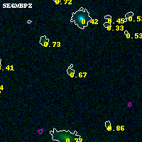 Black segments are analyzed here. Roll mouse over color images to view segments. Best viewed in a wide browser window (1200 pixels or more). Download SED & P(z) plots to view larger versions.
