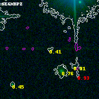 Black segments are analyzed here. Roll mouse over color images to view segments. Best viewed in a wide browser window (1200 pixels or more). Download SED & P(z) plots to view larger versions.