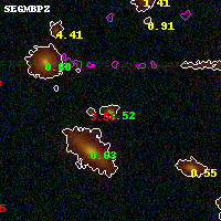 Black segments are analyzed here. Roll mouse over color images to view segments. Best viewed in a wide browser window (1200 pixels or more). Download SED & P(z) plots to view larger versions.