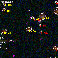 Black segments are analyzed here. Roll mouse over color images to view segments. Best viewed in a wide browser window (1200 pixels or more). Download SED & P(z) plots to view larger versions.