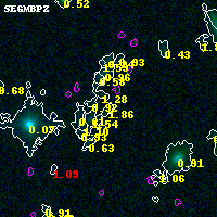 Black segments are analyzed here. Roll mouse over color images to view segments. Best viewed in a wide browser window (1200 pixels or more). Download SED & P(z) plots to view larger versions.