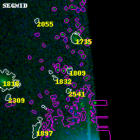Black segments are analyzed here. Roll mouse over color images to view segments. Best viewed in a wide browser window (1200 pixels or more). Download SED & P(z) plots to view larger versions.