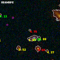 Black segments are analyzed here. Roll mouse over color images to view segments. Best viewed in a wide browser window (1200 pixels or more). Download SED & P(z) plots to view larger versions.