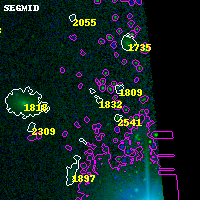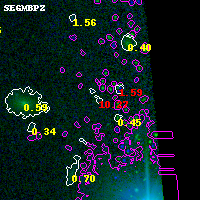 Black segments are analyzed here. Roll mouse over color images to view segments. Best viewed in a wide browser window (1200 pixels or more). Download SED & P(z) plots to view larger versions.