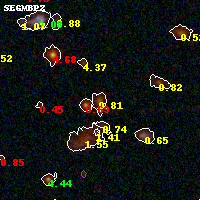 Black segments are analyzed here. Roll mouse over color images to view segments. Best viewed in a wide browser window (1200 pixels or more). Download SED & P(z) plots to view larger versions.