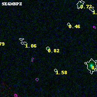 Black segments are analyzed here. Roll mouse over color images to view segments. Best viewed in a wide browser window (1200 pixels or more). Download SED & P(z) plots to view larger versions.