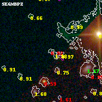Black segments are analyzed here. Roll mouse over color images to view segments. Best viewed in a wide browser window (1200 pixels or more). Download SED & P(z) plots to view larger versions.