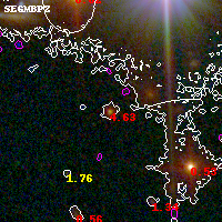 Black segments are analyzed here. Roll mouse over color images to view segments. Best viewed in a wide browser window (1200 pixels or more). Download SED & P(z) plots to view larger versions.