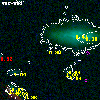 Black segments are analyzed here. Roll mouse over color images to view segments. Best viewed in a wide browser window (1200 pixels or more). Download SED & P(z) plots to view larger versions.
