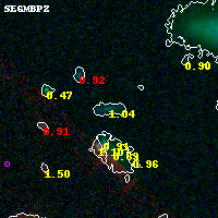 Black segments are analyzed here. Roll mouse over color images to view segments. Best viewed in a wide browser window (1200 pixels or more). Download SED & P(z) plots to view larger versions.