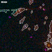 Black segments are analyzed here. Roll mouse over color images to view segments. Best viewed in a wide browser window (1200 pixels or more). Download SED & P(z) plots to view larger versions.