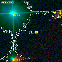 Black segments are analyzed here. Roll mouse over color images to view segments. Best viewed in a wide browser window (1200 pixels or more). Download SED & P(z) plots to view larger versions.