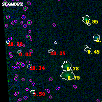 Black segments are analyzed here. Roll mouse over color images to view segments. Best viewed in a wide browser window (1200 pixels or more). Download SED & P(z) plots to view larger versions.