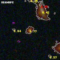 Black segments are analyzed here. Roll mouse over color images to view segments. Best viewed in a wide browser window (1200 pixels or more). Download SED & P(z) plots to view larger versions.