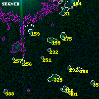 Black segments are analyzed here. Roll mouse over color images to view segments. Best viewed in a wide browser window (1200 pixels or more). Download SED & P(z) plots to view larger versions.