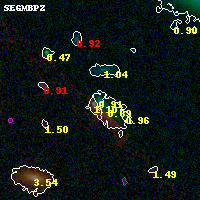 Black segments are analyzed here. Roll mouse over color images to view segments. Best viewed in a wide browser window (1200 pixels or more). Download SED & P(z) plots to view larger versions.