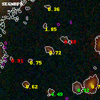 Black segments are analyzed here. Roll mouse over color images to view segments. Best viewed in a wide browser window (1200 pixels or more). Download SED & P(z) plots to view larger versions.