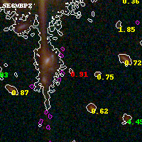 Black segments are analyzed here. Roll mouse over color images to view segments. Best viewed in a wide browser window (1200 pixels or more). Download SED & P(z) plots to view larger versions.