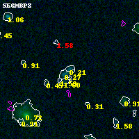 Black segments are analyzed here. Roll mouse over color images to view segments. Best viewed in a wide browser window (1200 pixels or more). Download SED & P(z) plots to view larger versions.