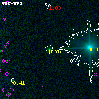 Black segments are analyzed here. Roll mouse over color images to view segments. Best viewed in a wide browser window (1200 pixels or more). Download SED & P(z) plots to view larger versions.
