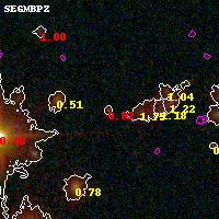 Black segments are analyzed here. Roll mouse over color images to view segments. Best viewed in a wide browser window (1200 pixels or more). Download SED & P(z) plots to view larger versions.