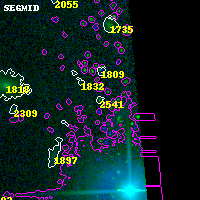 Black segments are analyzed here. Roll mouse over color images to view segments. Best viewed in a wide browser window (1200 pixels or more). Download SED & P(z) plots to view larger versions.